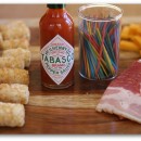 Game Day is almost here, and the best thing about game day (besides watching those guys in tight pants running around the field with a football) is definitely the food… comfort food of all sorts… food you’re willing to sacrifice extra time at the gym for… food that you only treat yourself to once a year on Super Bowl Sunday. A Super Bowl party wouldn’t be quite right without comfort food, would it? I’ve got a quick and easy appetizer recipe for you that requires only 4 ingredients: bacon, tater tots, cheddar cheese and TABASCO® Original Red.