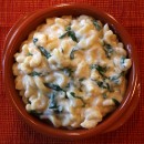 For cheese-lovers, there is nothing on earth quite as satisfying as a dish of homemade macaroni and cheese. I love to see a good mac n’ cheese on the menu when I’m out to dinner… with bacon, with lobster, with caramelized onions… with a zillion interesting cheeses combined and all melted and gooey. It’s heaven on a diet-buster’s plate, which you’ve just gotta go for every once in a while, right? Right. The most recent issue of EveryDay Food (love this little magazine for quick dinner ideas) had a mac and cheese recipe that I fiddled with to create my own version: Spinach Macaroni and Cheese.