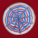 My sister made this one, which I think looks most like exploding fireworks! She just put dots of red and blue on the cookie and then dragged a toothpick through each dot to make the “fireworks.” So cute!