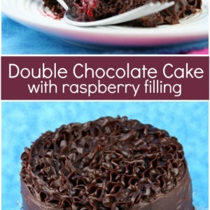 Double Chocolate Cake with Raspberry Filling is a great cake for celebrating all kinds of things! How fabulous does that chocolatey layer of frosting look? I mean… I want to dive into this cake head-first!