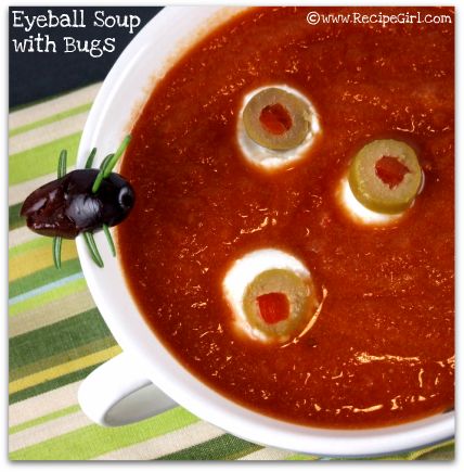 - Ladle the hot soup into shallow bowls. Float 4 or 5 eyeballs in soup, and place a bug on the rim of each bowl.
