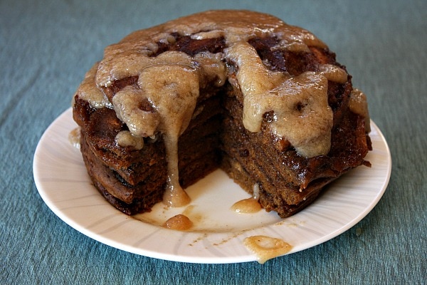 It’s yet another Cinnamon Roll Pancakes recipe, my dear readers! I’ve done the original. I’ve pumpkin’ed the original, and now I’ve gingerbread’ed the original. These are Gingerbread Cinnamon Roll Pancakes!