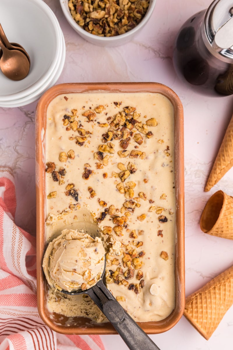 Here’s the best Maple Walnut Ice Cream recipe with a rich maple ice cream base and toasted walnuts mixed in.