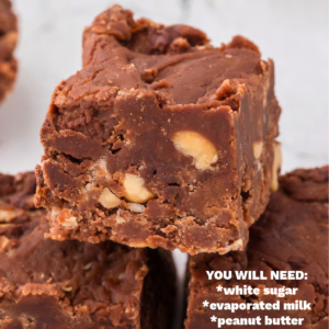 Peanut Butter Chocolate Fudge is a sweet chocolate fudge flavored with peanut butter, and it has added peanuts for a bit of crunch.
