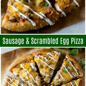 Sausage and Scrambled Egg Pizza is a delicious choice for a weekend breakfast.