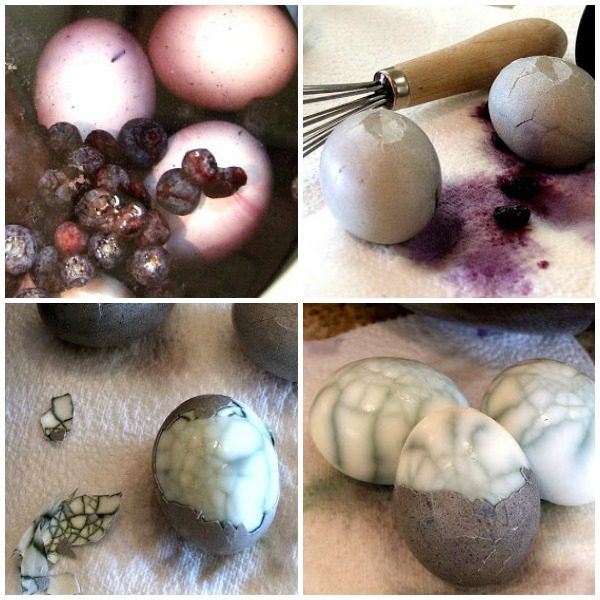 - Place the eggs in a single layer in a large saucepan, and cover with water and blueberries. Bring to a boil. Remove from heat. Cover; let stand for 10 minutes.