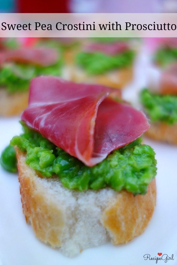 This Sweet Pea Crostini with Prosciutto is a delicious appetizer to serve for spring or summer entertaining. Bright green crostini is so pretty for St. Patrick’s Day or a cocktail party.