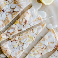 In a small saucepan, heat the milk, butter, vanilla, lemon juice and almond extract over medium-low heat. Whisk in 1 cup of the sugar; add remaining sugar as needed until icing reaches drizzling consistency.